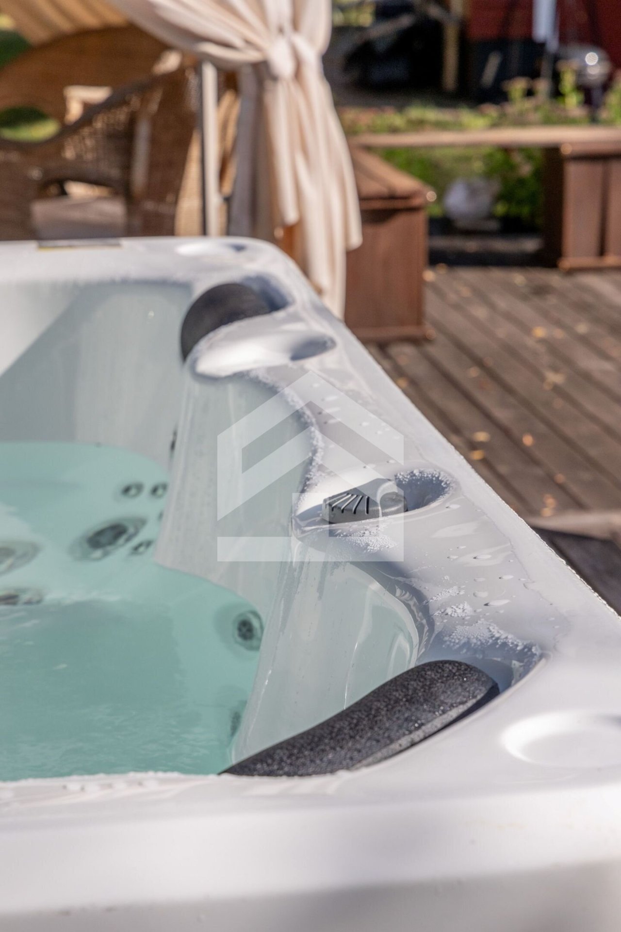 Wellness & Erholung: Eine eigene Sauna im Haus sowie ein Whirlpool (Spabad) auf der Außenterrasse laden zum Entspannen ein.